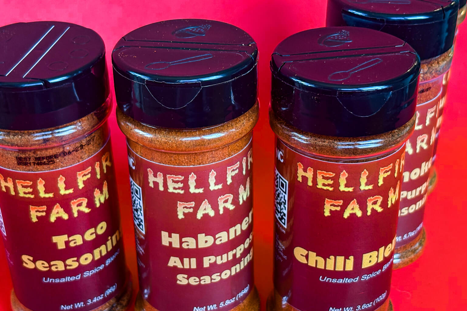 All through this time, we continued to carry our fresh peppers, and dried pepper powders. But although there was interest in the powders, we also had a high demand for spice blends, seasonings, and rubs. Not knowing quite where to start, we just took our own personal recipes for some spice blends that we cook with at home and started packaging those – and people loved them!