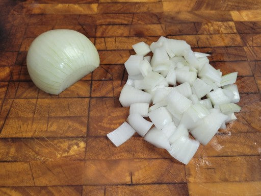 Coarsely chop the onion. Heat the oil in the pan and add the onion. Sauté for 2-3 minutes.